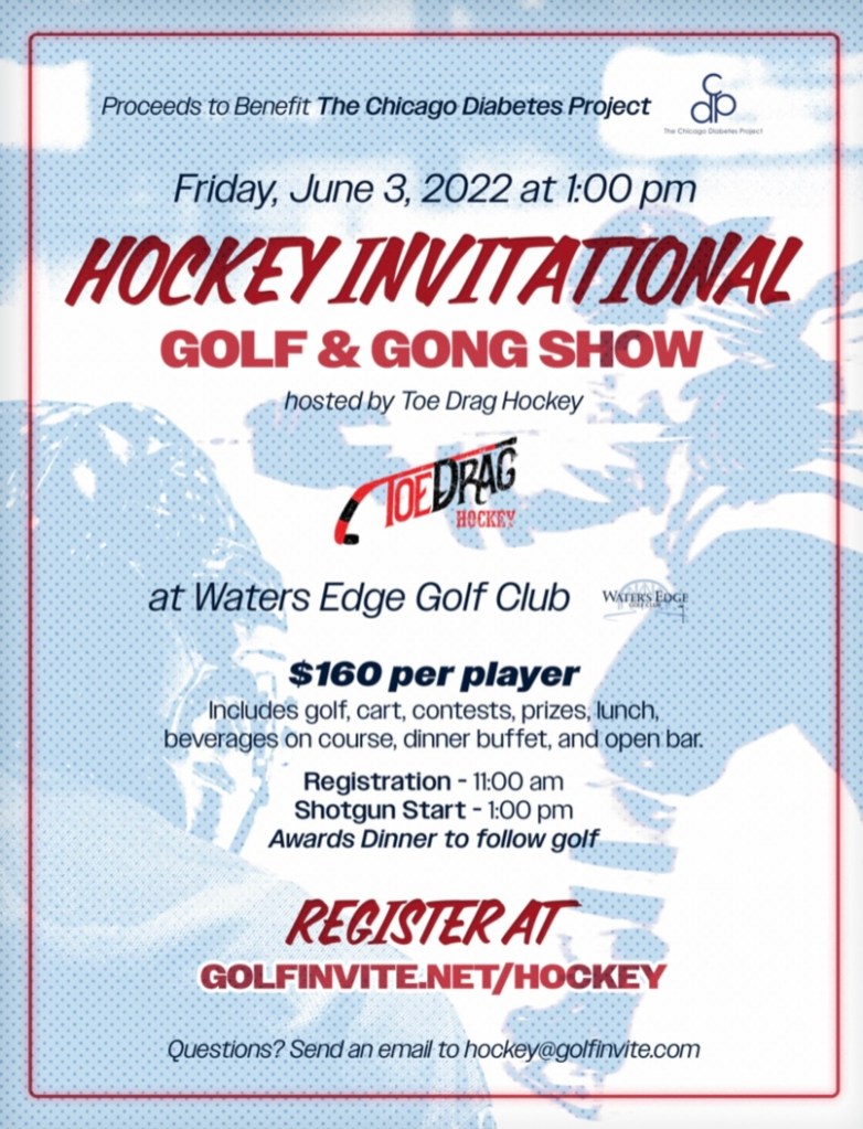 This is the 8th year, we have a 501c-3, and we expect 100+ golfers, including hockey coaches and former players. 100% of the proceeds go to the Chicago Diabetes Project. My son Matthew was diagnosed at age two, and I have two more kids on my peewee team living and playing hockey with Type 1 diabetes. Type 1 is entirely different from type 2 diabetes and many parents feel it should be called something different because too many people think it comes from a bad diet.