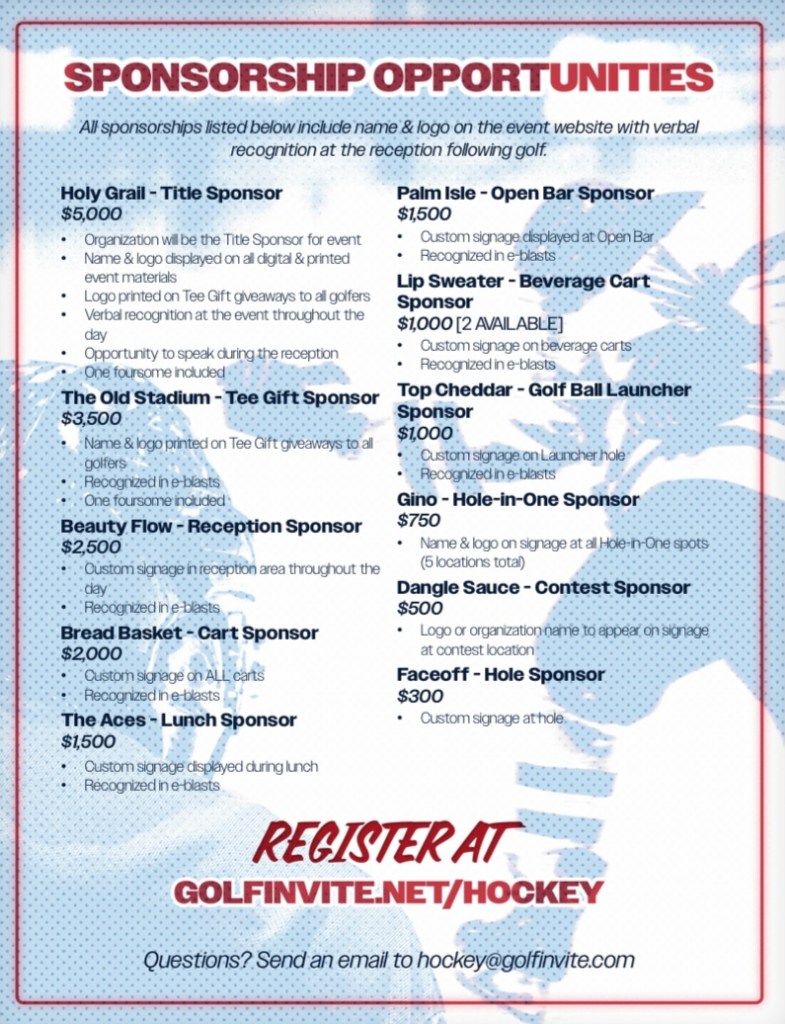 And the other piece of what you can do with us is to participate in the 6th annual Hockey/ Golf GongShow! Golf with us, or donate, sponsor a hole , maybe an event, and of course volunteers are severely needed. https://www.golfinvite.net/hockey